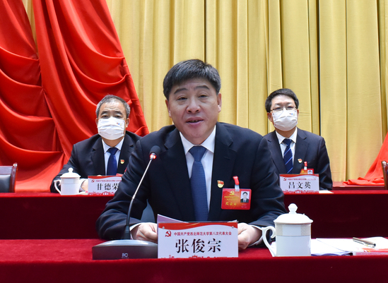 张俊宗最后说,实干铸就伟业,奋斗开创未来。让我们高举中国特色社会主义伟大旗帜,坚持以习近平新时代中国特色社会主义思想为指导,以此次党代会为新的起点和契机,在新一届党委的坚强领导下,紧紧依靠全体共产党员和全校师生员工,解放思想,同心同德,奋力拼搏,开拓创新,为争取早日建成教师教育特色、民族共同体特色、服务西部经济社会发展特色鲜明的一流大学而努力奋斗,以优异的成绩迎接党的二十大胜利召开!