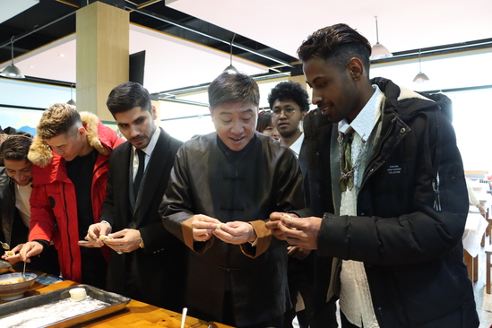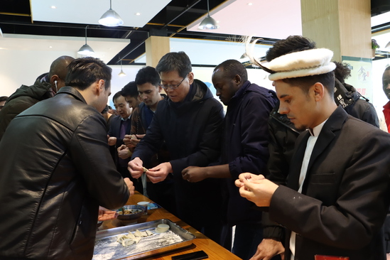 “新年好,给大家拜个年!”“大家坚守岗位,辛苦了!”每到一处,校领导都热情地与值班人员握手致意、亲切交谈,感谢他们为确保假期各项工作平稳运行的辛勤付出,并叮嘱大家牢固树立安全意识、强化责任意识,立足自身岗位、履职尽责,为学校提供充足的安全保障,确保寒假期间校园平安和谐、安全稳定。在学生餐厅,校领导、相关单位负责人和留学生们欢聚一堂,一起包饺子、话亲情,大家在欢声笑语、其乐融融的浓浓年味中共迎新春佳节。