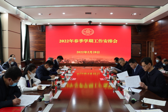 2月28日下午,西北师大召开2022年春季学期工作安排会。党委书记张俊宗主持会议并讲话,校长刘仲奎总结2021年学校工作并安排部署学校2022年度重点工作;党委常委、党委统战部部长、副校长,寒假总值班韩高年通报寒假工作并安排新学期疫情防控工作。校领导刘玉泉、董晨钟、马庆、李朝东、李建民、邓小娟出席会议,党委常委、党委组织部部长吕文英及机关各部门负责人在主会场参加会议,各单位、各学院负责人及全体教职工通过视频方式在分会场参加会议。