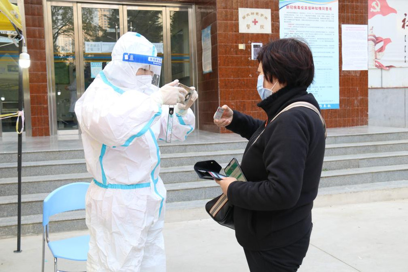 早晨8:00,46岁的校医院主治医师董翠珍准时来到预检分诊点与同事交接,他们需要详细将24小时内每一个病人的病情发展、用药量、注意事项核对登记。“预检分诊点需要医生24小时值守,经常要在凌晨将发热学生送至指定医院的发热门诊,经分诊初步筛查排除疑似新冠后,方可接回校医院临时留观点。在留观点,还需要我们对他们的病情进行合理的诊断医治,每一个步骤都马虎不得。”董翠珍说。从疫情发生以来,她就和同事们“战”在一起,举全力、用真心医治患者。即使从校医院到她的家中仅需要一分钟不到的路程,20多天的时间里,她却没有回过一次家,见过一次家人。