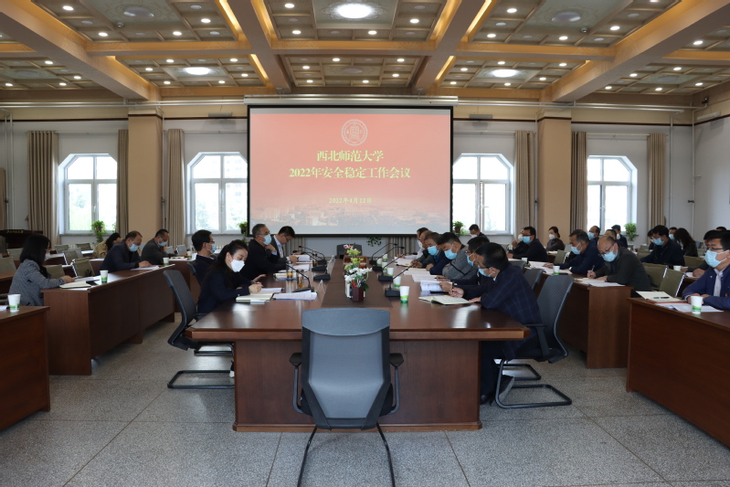 4月12日下午,西北师大召开2022年学校安全稳定工作会议。校长刘仲奎出席会议并讲话,党委副书记刘玉泉主持会议,校领导邓小娟、韩高年出席会议。学校安全稳定工作小组成员单位及相关学院、部门负责人参加会议。