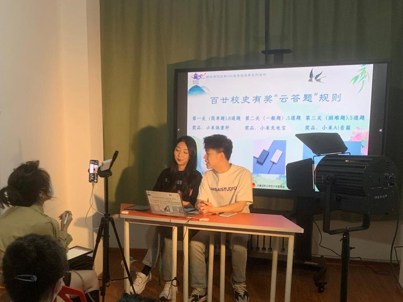 在全校众志成城抗击疫情,校园封闭管理期间,通过网络直播方式开展的百廿校史“云答题”活动得到了同学们的热切关注与积极参与。在连续5天的直播活动中,共有9600余名学生在线观看,同学们纷纷通过网络连麦的方式,与设在兰天学生公寓直播间的主播们一起学校史、赢奖品。“在线闯关答题学校史的方式特别新颖,我和舍友每天都守候在屏幕端观看大家闯关答题,我们也学习到了很多校情校史知识。我们将不断深入学习西北师大120年来筚路蓝缕、艰苦创业的历史,在学习校史中做到知史爱校、知史明志。”文学院2019级汉语言文学专业何楠说。