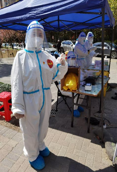 西北师大物理与电子工程学院2017届校友、上海国际学校教师向丽娜负责维护核酸采样点排队秩序,充当翻译和引导外国友人进行核算检测等工作。“穿上防护服,戴上口罩、脚套、手套、护眼屏,我被包裹得严严实实那种闷热、汗流浃背的感觉让我更加体会到一线医护工作人员的不易,我们都是挺身而出的普通人。”向丽娜说。