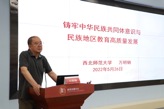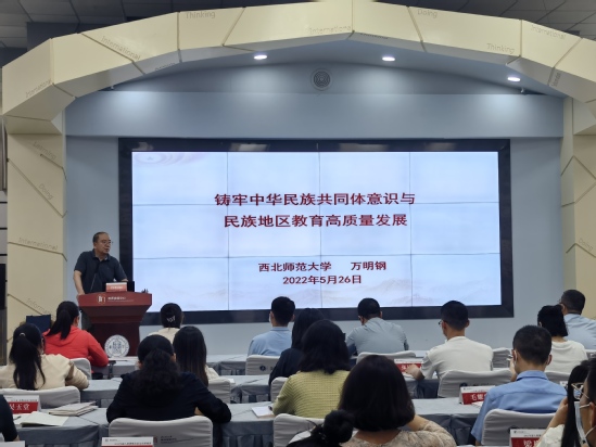 铸牢中华民族共同体意识要深植于历史,更要着眼于发展,不断增强对伟大祖国、中华民族、中华文化、中国共产党、中国特色社会主义的认同,在共同团结奋斗中实现共同繁荣发展。5月26日,西北师大开展新入职教师“铸牢中华民族共同体意识”专题培训,邀请万明钢教授为新入职教师作了题为《铸牢中华民族共同体意识与民族地区教育高质量发展》的专题报告。