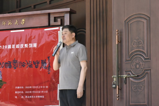 邓小娟在致辞中指出,为深入学习贯彻学校第八次党代会精神,庆祝西北师大120周年校庆,学校通过书法艺术的方式回顾学校120年办学历史和办学经验,继承和发扬优良办学传统,沿着先辈的足迹奋发前行。美术学院曹恩东此次展出的120幅书法作品,以小见大,立意高远,内涵丰富,催人奋进,表达了作者对学校120周年的礼赞和书法艺术的追求。