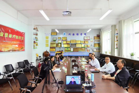 田澍和外国语学院负责人共同为国际中文传播教师证书考试考点揭牌。