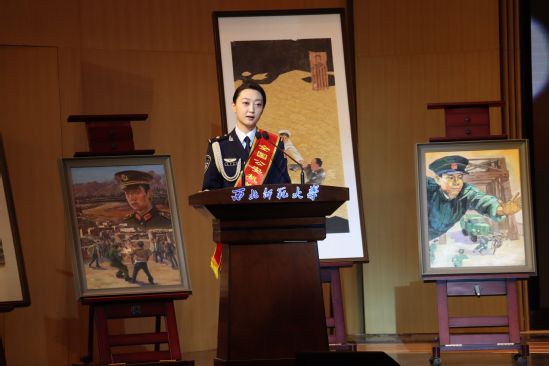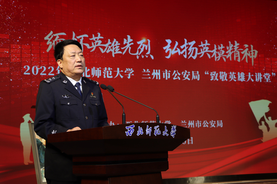 “从燕山脚下辗转至黄河之滨,历经抗战烽火,西北师大始终把心系民族独立、国家富强的强烈情怀化作坚实的爱国行动。在抗日战争时期、抗美援朝时期、改革开放和中国特色社会主义新时代,西北师大都涌现出了一批又一批投笔从戎、保家卫国、献身国防的英雄儿女。英雄精神已经深深地根植于每个师大人内心深处,成为师大人独特的精神气质。”西北师大党委书记张俊宗现场分享了百廿师大的爱国情与报国志。他表示,爱国主义是西北师大的优良办学传统、教育底色和红色基因,在一百多年的办学历程中,西北师大始终与祖国同呼吸、共命运,始终把崇尚英雄精神、培养英雄模范作为立德树人的重要内容。