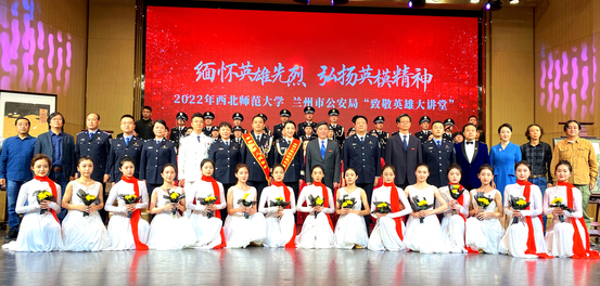 窦勇烈士之子窦永杰警官、李钢烈士之子李俊杰警官分别追忆父亲的英雄事迹;“全国优秀人民警察”、兰州市公安局城关分局刑事侦查直属大队大队长张子剑,“全国公安机关爱民模范集体”代表、兰州市公安局刑警支队电信网络案件侦查大队民警陈荟文分别作分享报告;学校师生和兰州市基层民警代表共同演绎诗朗诵《是谁》、合唱《少年壮志不言愁》,以多种形式缅怀英烈、致敬英雄。