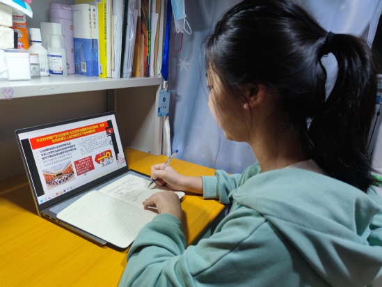 历史文化学院2020级历史学2班学生张田荣说:“新时代的青年责任重大、使命光荣。我们要坚持深入学习党的二十大精神,坚定理想信念,刻苦学习,锤炼意志,秉持甘做螺丝钉精神,时刻保持奋斗姿态,为全面建成社会主义现代化强国、实现第二个百年奋斗目标贡献青春力量。”