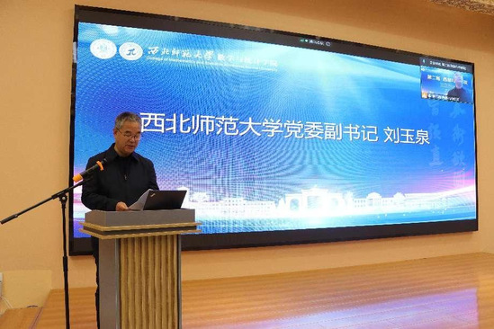 西北师大党委副书记刘玉泉出席开幕式并致辞。刘玉泉向与会专家介绍了西北师大的发展历程和现状表示,本次会议是我校于2022获批成立甘肃省数学与统计学基础学科研究中心后承办的第一次学术会议,既是对几何学及相关领域发展的一次系统把脉问诊,更为加强学术交流、跟踪学科前沿、促进科研创新搭建了一个很好的平台。希望各位专家学者能够畅所欲言、深入探讨,交流经验、增进友谊,进一步推动我校数学学科取得更好发展希望数学与统计学院以本次会议为契机,加强与各位专家学者的交流与合作,在加快学科发展的同时为培养更多的高层次数学专业人才贡献力量。