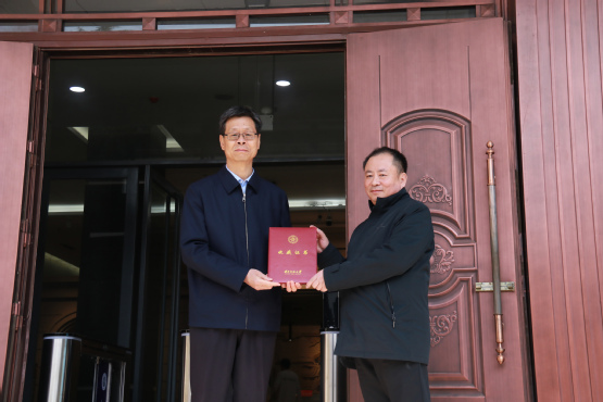 开幕式上,莫晓松向学校捐赠代表画作,刘仲奎向莫晓松颁发收藏证书、兼职教授聘书并宣布画展开幕