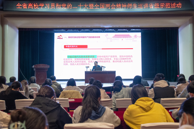 43日,“逐梦新征程 奋斗创未来”全省高校学习贯彻党的二十大暨全国两会精神师生巡讲省级示范活动在西北师大举行。全校专职团干部、研究生支教团全体成员及各学院青年师生代表共计300余人参加。