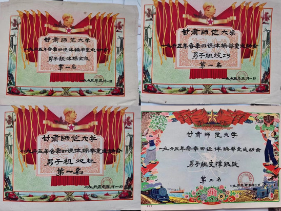仪式上,罗力生捐赠了自己就读期间,在1965年全校田径举重体操运动会上获得由时任副校长袁敦礼先生颁发的四张奖状,分别是男子体操全能冠军、自由体操冠军、双杠冠军和跳马亚军。罗力生说,这些荣誉是属于个人的,更是属于学校的。他们记载了一代西师人的光荣理想和积极投身社会主义建设的光荣历史,把这些具有纪念意义的奖状回赠给学校,以此铭记过去、鼓舞未来。