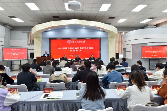 田澍在讲话中对新入职教师加入西北师大这个大家庭表示热烈的欢迎,并对此次培训课程学习内容作了简要介绍。他指出,此次培训研修班是学校加强人才队伍建设的一项重要举措,目的就是引导和帮助新入职教师更好地走好职业生涯第一步,加强职业道德修养,更好履行教书育人神圣职责,为今后的教师专业发展奠定良好基础。新入职教师要认真学习不自满,遵守培训纪律,静下心来、集中精力、认真学习,把自己的本领才干融会贯通到今后的教育教学过程中,尽快成长为本专业的行家里手;要做好规划不浮躁,结合学校校情和自身优势,立足专业发展,自觉把个人职业发展与学校事业发展紧密联系起来,不断用新理念、新方法写好教书育人和科学研究的新答卷;要积极进取不放松,厚植教育情怀,心存对教育事业的敬畏之心、对学生的仁爱之心,以良好的师德师风、扎实的专业素养、高尚的教育情怀诠释“师道尊严”,用实际行动为学校一流大学建设贡献智慧和力量。