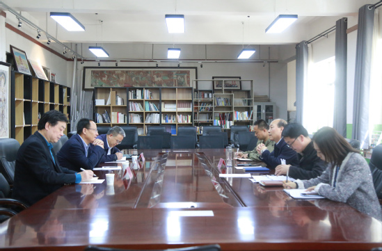 马庆一行先后前往学院当代美术馆、中国画教室、创新中心、泥版画工作坊、舞蹈教室实地查看了敦煌学院的教学情况,与上课师生交谈详细了解学院日常教育教学和管理运行情况,并主持召开座谈会。
