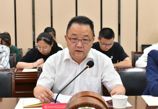 贾宁在致辞指出我们要以习近平总书记重要讲话精神为指引,立足学校办学优势,不断深化对文化建设的规律性认识,更好担负起新的文化使命中国历史研究院田澍工作室的建设和发展要聚焦“五大特性”开展基础性研究,特别是依托简牍学一流学科建设突破工程,以服务国家战略需求为导向,构建卓越创新体系要聚焦“两个结合”开展理论阐释聚焦“立德树人”根本任务培育时代新人,注重以文化人以史育人,引导学生成为习近平新时代中国特色社会主义思想的坚定信仰者和忠实践行者,不断培育德智体美劳全面发展的时代新人,为文化甘肃建设贡献西北师大力量。