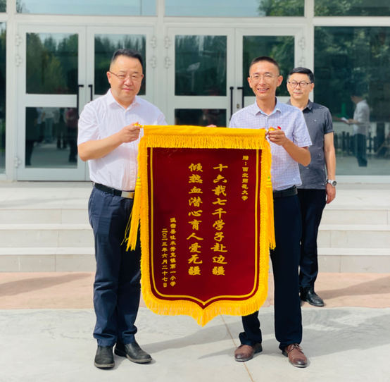 贾宁表示,实习支教学生能够真心爱孩子,用爱滋养、塑造孩子们的心灵,用自己的实际行动影响孩子的一生,给孩子们带来更多自信,这是践行教育时代使命的实际行动。他希望,支教学生始终牢记“为党育人、为国育才”的初心使命,认真学习宣传贯彻习近平总书记关于建设教育强国、文化传承发展的重要讲话精神,培育和践行社会主义核心价值观,落实立德树人根本任务,努力培养德智体美劳全面发展的社会主义建设者和接班人,为西部地区教育振兴作出新的更大贡献。