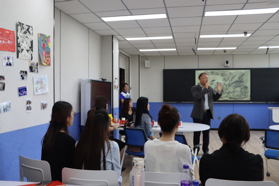 郑光洙一行参观了外国语学院朝汉语言文化交流中心,与学生进行了交流,欣赏了外国语学院师生诗歌朗诵和才艺表演。