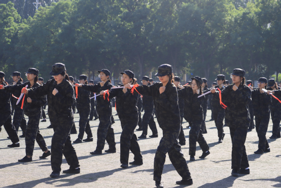 分列式后,刺刀术、擒敌拳等精彩表演一一呈现。挺拔的身姿、规范的动作,一招一式、一拳一掌,体现着西师学子的求实风貌,磅礴的气势、澎湃的朝气映射出师大青年的时代风采。
