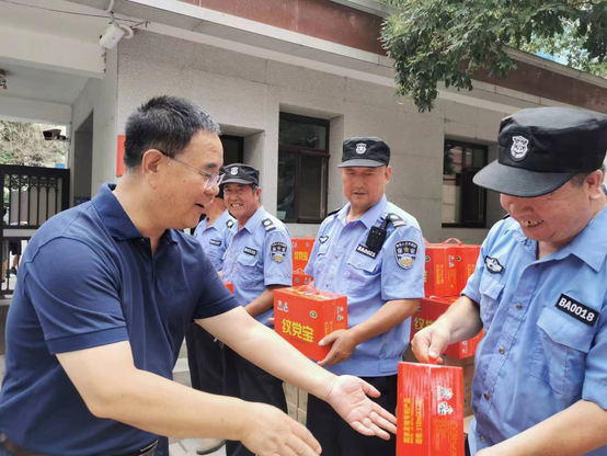 在党委保卫部门卫值班岗位,刘玉泉对暑期门卫值班工作给予了充分肯定。针对近期学校加强门卫管理,刘玉泉提醒工作人员,在进一步细化和加强门禁管理的同时做好消暑降温和自身健康防护,并代表学校送上防暑慰问品。