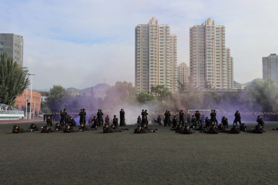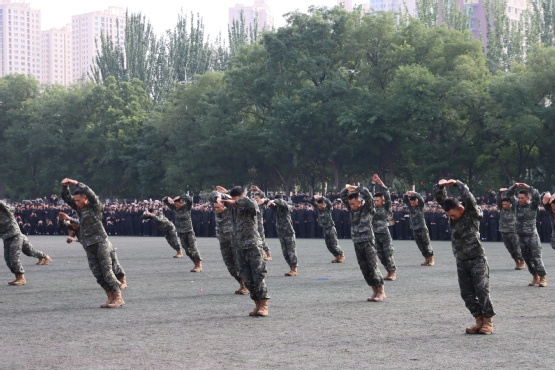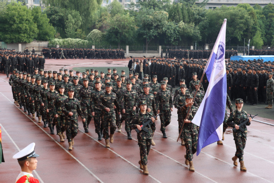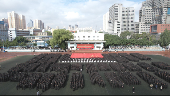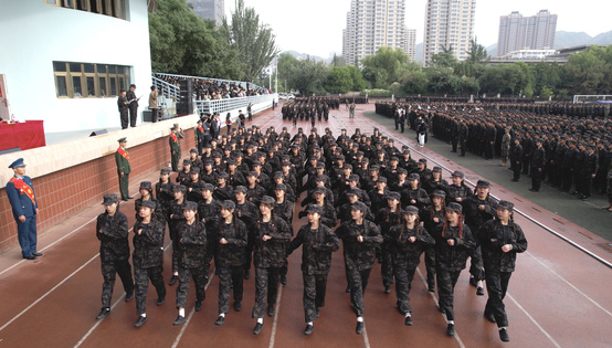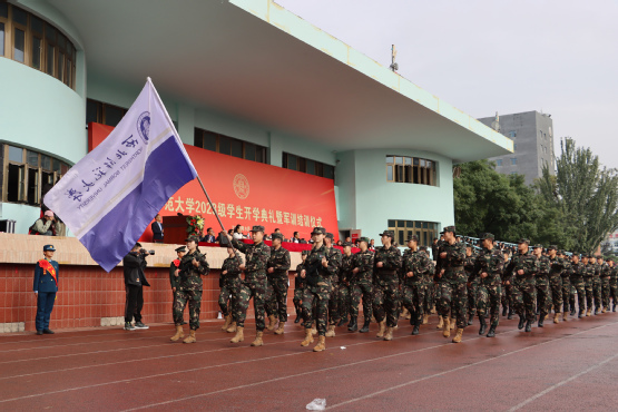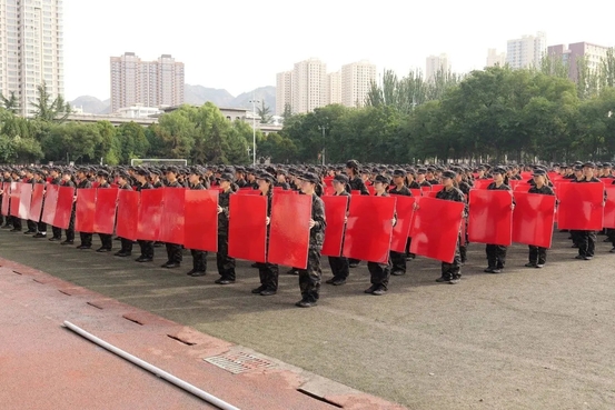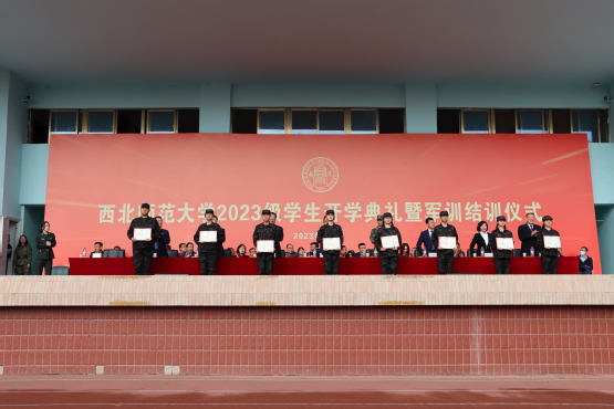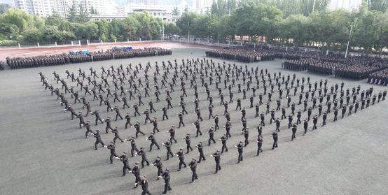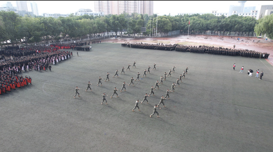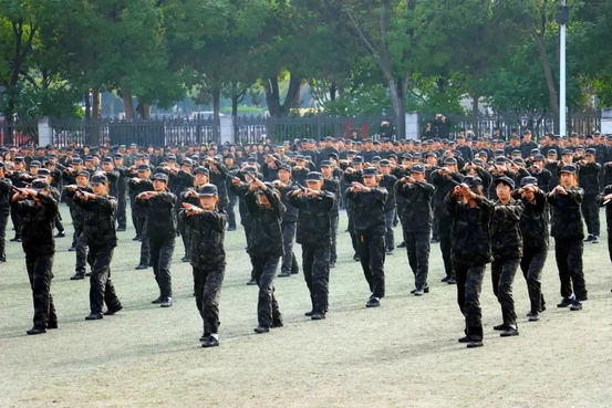 在激昂的进行曲中,由4000余名2023级新生组成的四十个方阵在校旗的引导下,以饱满的精神、飒爽的英姿、整齐的队列、稳健的步伐依次通过主席台,并在承训教官的带领下全体参训学员汇报表演了《心理健康操》、拳术展示、刺刀术表演、棍术表演、战术表演,全体军训教官表演了综合格斗术。参训学员不时变换队形,依次摆出了“有理想 敢担当 能吃苦 肯奋斗”“知术欲圆 行旨须直”等字样,巨幅国旗在方阵的上方徐徐展开,传递着西北师大人对祖国的爱和祝福。军歌嘹亮、军姿铿锵,军训会操表演彰显着新一代师大学子的精神风貌,一字字、一声声展现出西北师大青年学子奋力新时代的决心和百廿学府的时代担当,表达了对伟大祖国的美好祝愿!