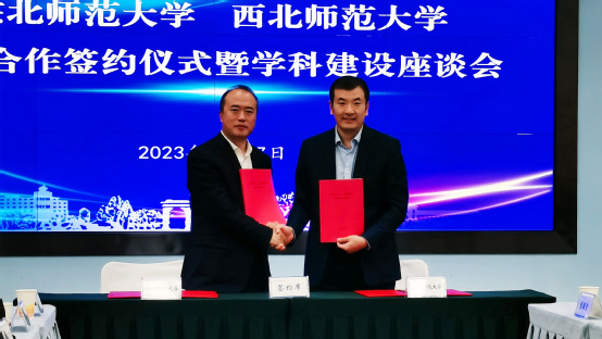 徐海阳在致辞中表示,东北师大和西北师大虽远隔千里,但志同道合、同气连枝,始终怀着“教育为国家之命脉”的执着信念,共同坚守师范教育特色,在长期的事业发展中同向同行,结下了深厚的情谊,为国家输送大批师德高尚、德才兼备的教育人才。当前,建设教育强国是全面建成社会主义现代化强国的战略先导,是以中国式现代化全面推进中华民族伟大复兴的基础工程。师范大学作为联结基础教育和高等教育的重要结合点,在教育强国建设中具有不可代替的战略性作用。两校同属师范院校,共同肩负着培养卓越教师、引领基础教育创新改革发展的历史重任,是推动教育高质量发展、建设教育强国的重要力量。今天,东北师大与西北师大签署战略合作协议,开启了“东西合璧”两校合作的新篇章,正是贯彻落实习近平总书记关于教育的重要论述的务实举措,也必将为东北地区和西北地区的高等教育发展注入新活力、创造新契机。希望两校共担使命、携手并进,充分发挥各自在人才培养、科学研究、学科建设等方面的办学优势,深入开展项目合作、平台合作,加强人才队伍交流,推动教育学和简牍学学科建设合作走深走实,持续加强沟通对接,实现共赢发展,为教育强国建设贡献师范大学力量。
