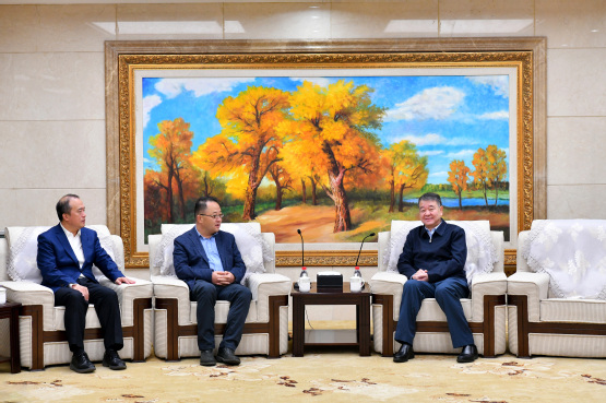 开班仪式前,兰州大学党委书记马小洁与贾宁、王占仁会谈交流。