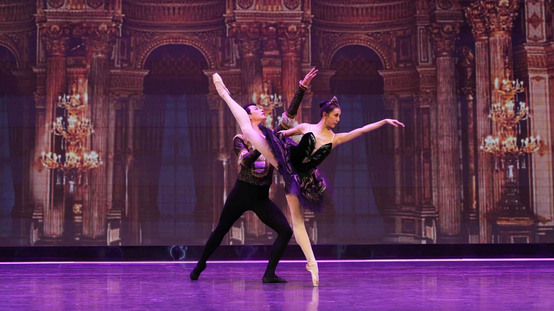 演出在优美华丽的《巴赫塔》中拉开帷幕,《open your eyes》《I can smell you》《幻想曲》《意》等现代舞与芭蕾结合,突显出表演者对艺术的思索。《黄河》和《天鹅湖》性格舞选段中舞者时柔时刚、时动时静的表演形象不仅彰显了芭蕾的多元文化,更展现出鲜明的中国特色,将现场的氛围推向高潮。《灰姑娘》和《天鹅湖》双人舞中舞者用稳健轻盈的舞步、昂首挺胸的自信、精湛的舞蹈技巧演绎着芭蕾世界中高贵与典雅。
