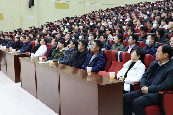 报告会上,张俊豪围绕深入学习领会习近平新时代中国特色社会主义思想,特别是习近平总书记关于铸牢中华民族共同体意识的重要论述,对中华民族共同体的深刻内涵、重大意义、理论渊源、基本任务、实践路径和坚持加强、完善党的领导等方面作了系统深入的宣讲解读。宣讲中强调,要紧密团结在以习近平同志为核心的党中央周围,深刻领悟“两个确立”的决定性意义,增强“四个意识”、坚定“四个自信”、做到“两个维护”,深入学习贯彻习近平总书记关于加强和改进民族工作的重要思想,以铸牢中华民族共同体意识为主线,推动新时代党的民族工作高质量发展,建设认同度更高、凝聚力更强的中华民族命运共同体,为实现中华民族伟大复兴、建设中华民族现代文明贡献力量。