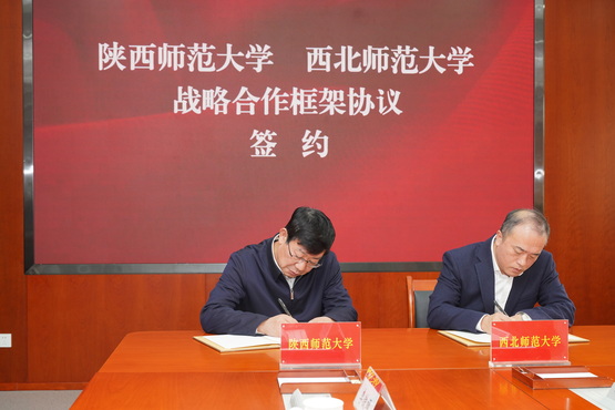 12月22日,西北师大与陕西师大战略合作签约仪式在陕西师大举行。陕西师大党委书记李忠军,校长、党委副书记游旭群,西北师大党委书记贾宁,校长、党委副书记王占仁出席仪式并致辞,两校相关部门负责人参加仪式。仪式由陕西师大党委常委、副校长陈新兵主持。