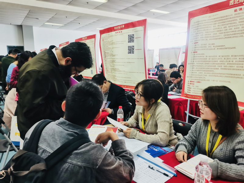 招聘现场,学校带编进校、博士定职、人才公寓、住房补贴、子女入学、青年教师导师制等系列“人才强校”政策吸引了300余名博士咨询面谈,并收到求职简历245份。大家纷纷表示:“西北师大的人才引进政策比较有吸引力,待遇也不错,有意愿来校工作。”
