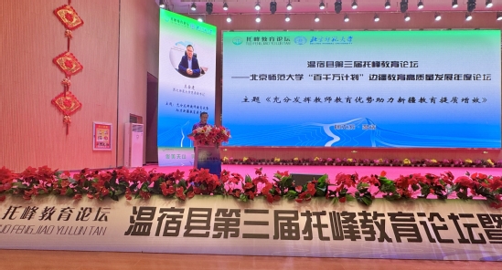 期间,王全进一行还参加了温宿县第三届托峰教育论坛暨北京师范大学“百千万计划”边疆教育高质量发展年度论坛,作了题为《充分发挥教师教育优势助力新疆教育提质增效》的主题报告。