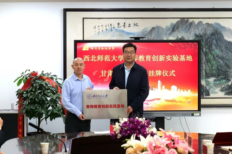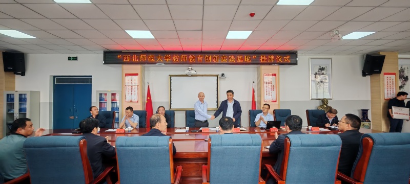 仪式上,西北师大与定西市第一中学等八所省级示范性高中签订合作备忘录,相关负责人共同为“教师教育创新实践基地”挂牌。