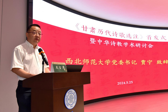 贾宁表示,甘肃是文化大省,也是诗歌大省。《甘肃历代诗歌选注》彰显了甘肃深厚的诗教文脉、展现了甘肃丰富的历史遗产、弘扬了甘肃厚重的文化精神,不仅让我们感受到广袤陇原大地浓浓的诗情画意,更让我们对优秀传统文化充满温情与敬意。这套书的顺利出版,不仅是对传统诗教的赓续,更是新时代诗教文化传承与普及的具体生动实践,也为高校思政课建设提供了生动鲜活的甘肃素材。