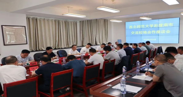 5月23日,西北师大党委书记贾宁一行赴陇南市开展校地合作交流,考察学校毕业生服务陇南基础教育及校友工作情况,并召开座谈会,就教师教育基地建设进行交流。陇南市委常委、副市长朱松华主持座谈会;市委常委、宣传部部长唐进军致辞。学校教务处、就业与校友事务处负责人参加。