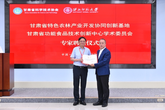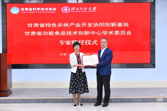 西北师大校长王占仁为院士、专家颁发了甘肃特色农林产业开发协同创新基地和甘肃省功能食品技术创新中心咨询专家委员会委员聘书。