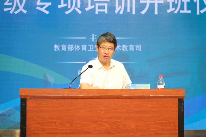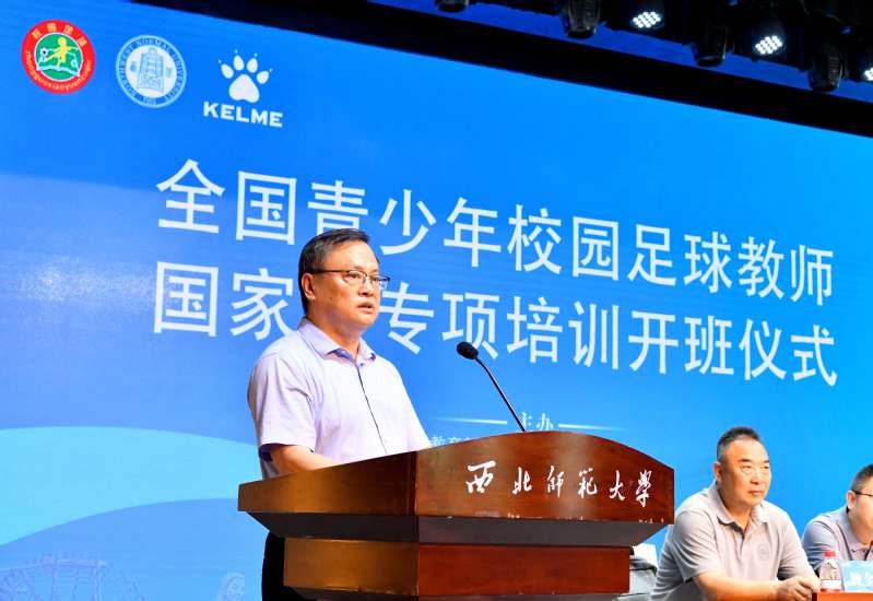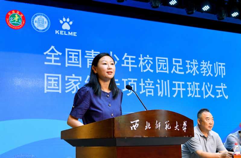甘肃省教育厅体育卫生与艺术教育处处长张捷向培训班授旗并致辞。她表示,省教育厅认真贯彻落实教育部关于发展好校园足球的决策部署,出台了一系列政策文件,制定了一系列发展新举措,希望参训教师珍惜难得的学习机会,认真学习、积极互动,将培训中学到的知识和专业技能应用到教学实践中去,不断探索和创新教学方法,提升教学效果,为推广和普及足球运动贡献自己的力量。
