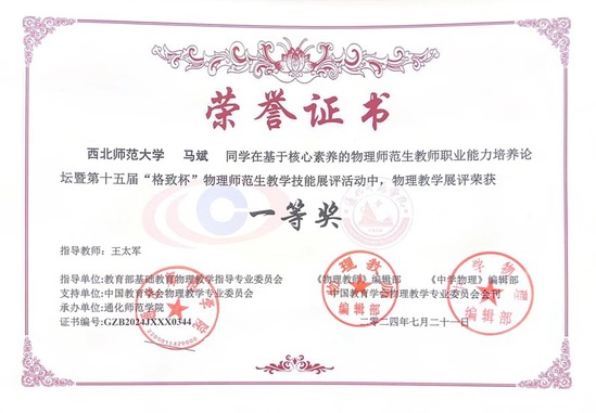 西北师大在第15届“格致杯”全国物理教学展评活动中获佳绩