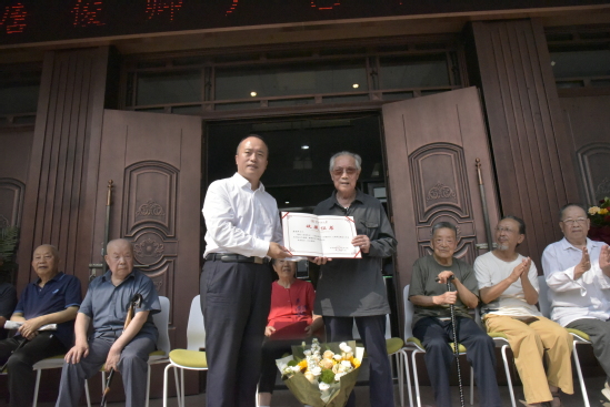 捐赠仪式上,王占仁为唐俊卿先生颁发作品收藏证书。