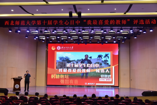 在第四十个教师节来临之际,由西北师大学生会主办的第十届学生心目中“我最喜爱的教师”候选人主题宣讲会在云亭校区音乐厅举行,来自全校各学院的350余名学生代表现场聆听并投票。