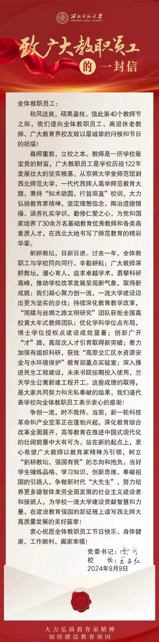 致广大教职员工的一封信