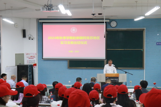 “我们即将踏上征程,心中充满了期待。”2024年秋季学期赴新疆阿克苏地区实习学生代表李珂昕表示,将以饱满的热情、扎实的专业知识和良好的精神风貌,投入到实习工作中去,努力锻炼自己、提高自己、成长自己,为新疆的建设和发展贡献自己的力量!