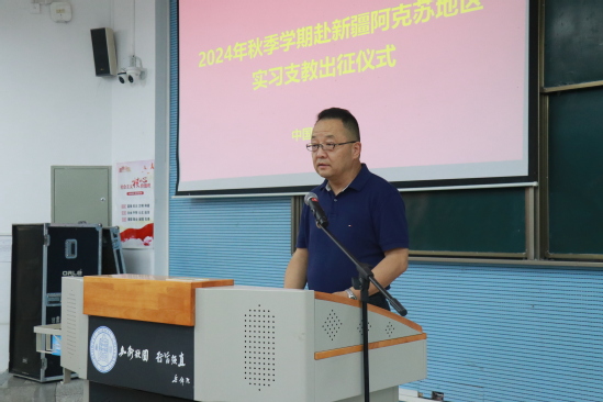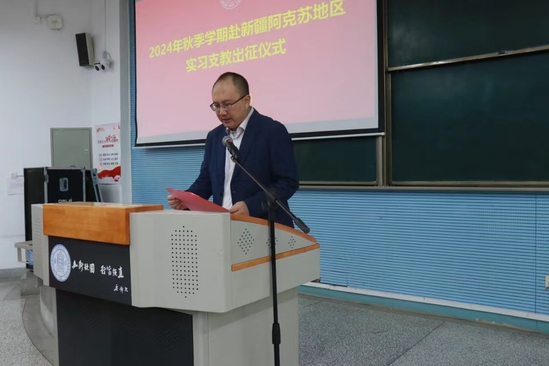 带队教师代表丁文魁表示,将带领学生用丰富的知识承托起边疆教育发展的责任,以饱满的热情、昂扬的斗志接续这场实习支教的“马拉松”,用高尚的师德努力做学生求学路上的引路人,与同学们一起顺利、高效、安全地完成本次赴新疆阿克苏地区的实习工作。