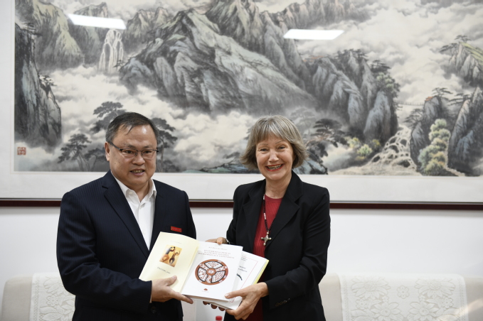 日前,卡比利亚陶器捐赠者法籍索菲莫罗女士应邀来校开展了为期一周的访问交流,党委副书记王全进会见来访人员进行座谈交流。