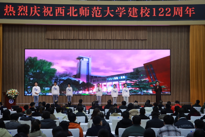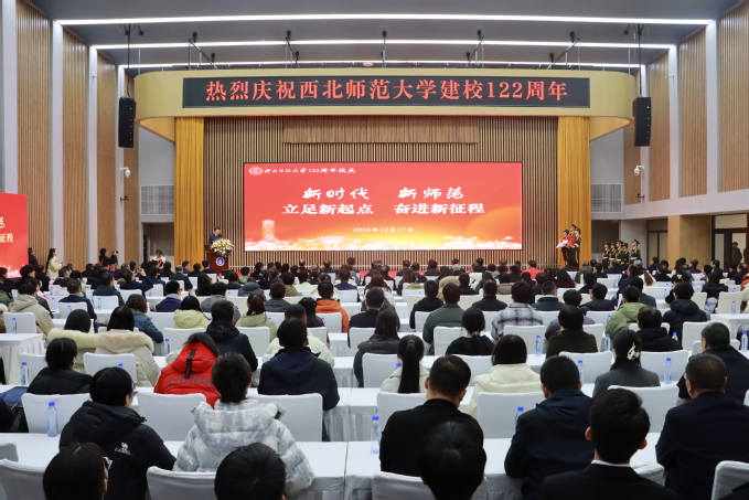 春华秋实岁序更替,百廿二载华章日新。12月17日下午,西北师大举行建校122周年纪念会议。党委书记贾宁主持会议,校长、党委副书记王占仁出席并讲话。兰州城市学院党委副书记、校长韩高年,甘肃开放大学党委副书记、校长邓小娟,兰州资源环境职业技术大学党委副书记、副校长李文生及西北师大校领导王全进、焦爱胜、张明军、王文昇、赵鑫、马世年、阎岩出席,党委常委、党委组织部部长周琳辉及校友代表,各学院、各单位、机关各部门负责人,离退休教师代表、师生代表等共计350余人共祝西北师大122周年华诞。