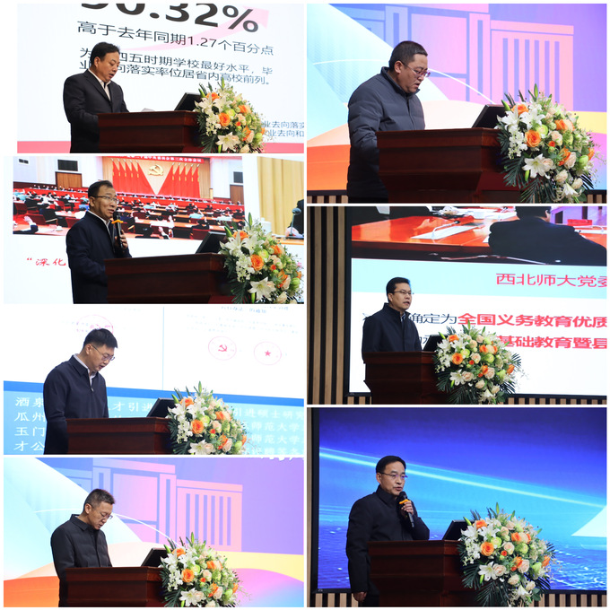会上,西北师大教务处处长、教师教育学院院长杨纳名,就业与校友事务处处长郭建东,酒泉市教育局党组成员、副局长李旺,临泽县县委常委、副县长巨生良,永靖县移民中学校长何存山,分别以《新时代新师范新教师——“新”质师范教育建设的师大担当、作为与探索》《师范生就业现状及工作开展情况》《筑梦飞天 才聚酒泉》《校地协同聚合力 双向赋能促发展——日韩人妻无码一区二区三区久久99_日韩精品一区二区三区中文在线_无码日韩精品一区二区免费_久久久91精品国产一区二区三区_亚洲精品久久久一区黄无码_国产91精品一区二区麻豆网站_成人国内精品久久久久影院与临泽县教育合作实践经验》《携手百廿师大 共创教育新篇》为题作了报告。庆阳市教育局党组成员、副局长曹钰城介绍了庆阳教育状况及校地融合发展协议实施情况,白银市教育局党组成员、副局长李文强分享了教师教育创新实践合作成果与经验。