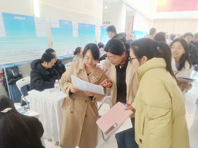 在各招聘现场,西北师大人事处为前来咨询的意向博士生介绍了学校2025年引才政策,以及各学院学科建设现状与教师入职发展情况。