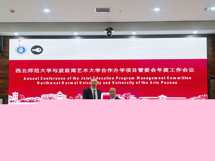 王占仁代表西北师大对比尼琛斯基副校长一行来访表示欢迎。他表示,波兹南艺术大学此次访问正值两校合作办学项目第二个办学周期开启之际,希望两校以此为契机,总结经验、凝聚共识、优化合作,进一步深化双方在艺术学科建设、人才培养和学术互访等方面的交流。