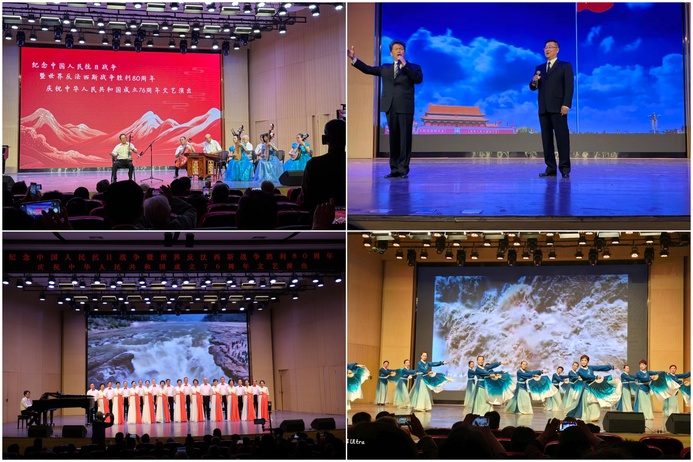 演出以纪念中国人民抗日战争暨世界反法西斯战争胜利80周年、庆祝新中国成立76周年为主题,离退休教师们以饱满的热情和良好的技艺,通过合唱、独唱、戏曲、舞蹈、器乐演奏等多种艺术形式,生动再现了中华民族艰苦卓绝的抗战历程,讴歌了新中国成立76年来取得的辉煌成就,彰显了中华民族自立于世界民族之林的精神风貌。