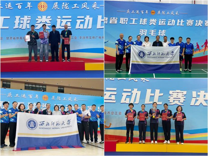 9月22日至25日,由省总工会与省体育局联合主办,平凉市总工会、平凉市文体广电和旅游局共同承办的甘肃省职工球类运动比赛决赛在平凉市举行。经过激烈角逐,我校西北师大代表队荣获乒乓球女子团体第二名、羽毛球男子单打第二名、羽毛球混合团体第四名的优异成绩,充分展示了西北师大教职工运动员团结协作、奋勇拼搏的精神风貌。